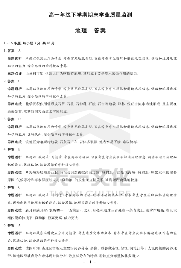 地理高一下期末学业质量监测答案.pdf