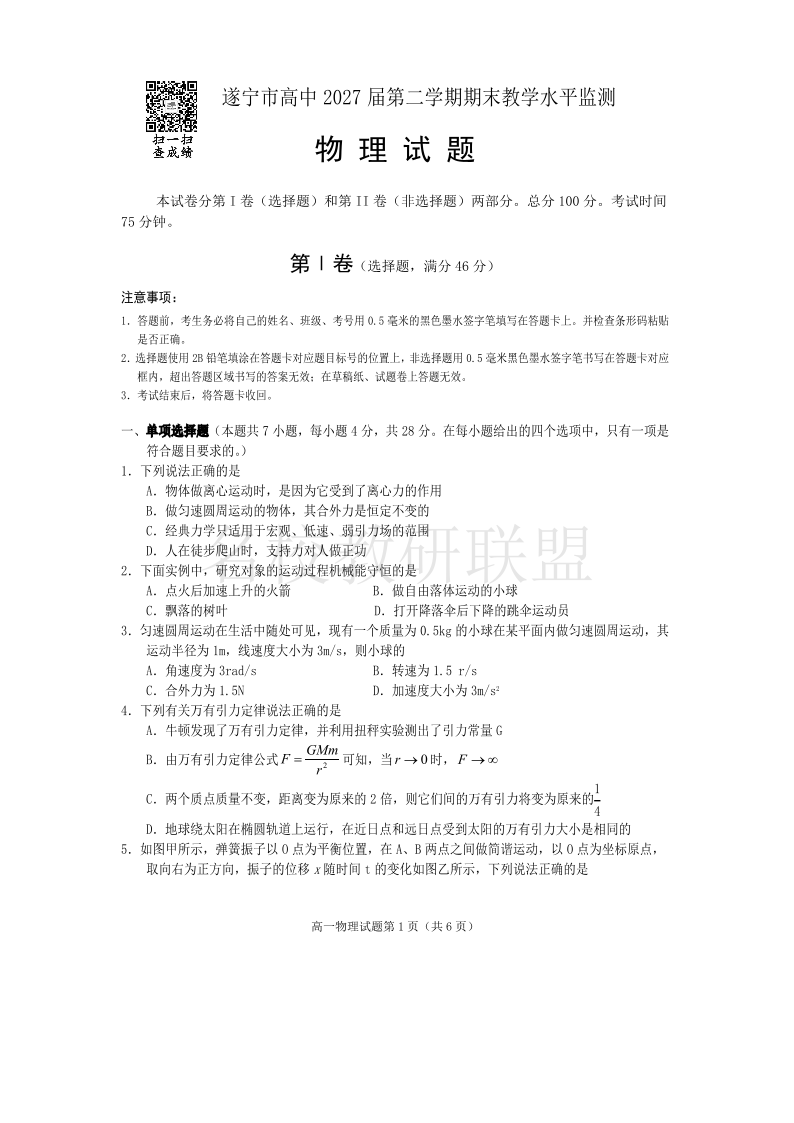 四川省遂宁市2024-2025学年高一下学期期末考试 物理.pdf