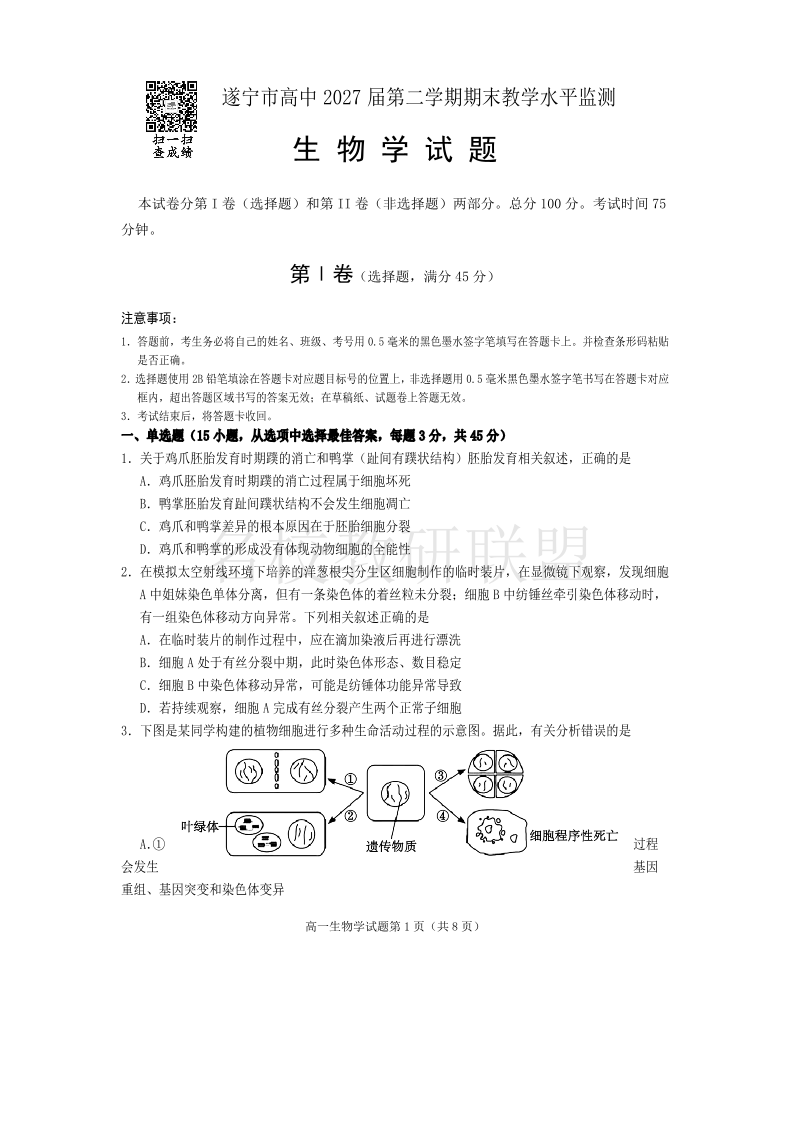 四川省遂宁市2024-2025学年高一下学期期末考试 生物.pdf