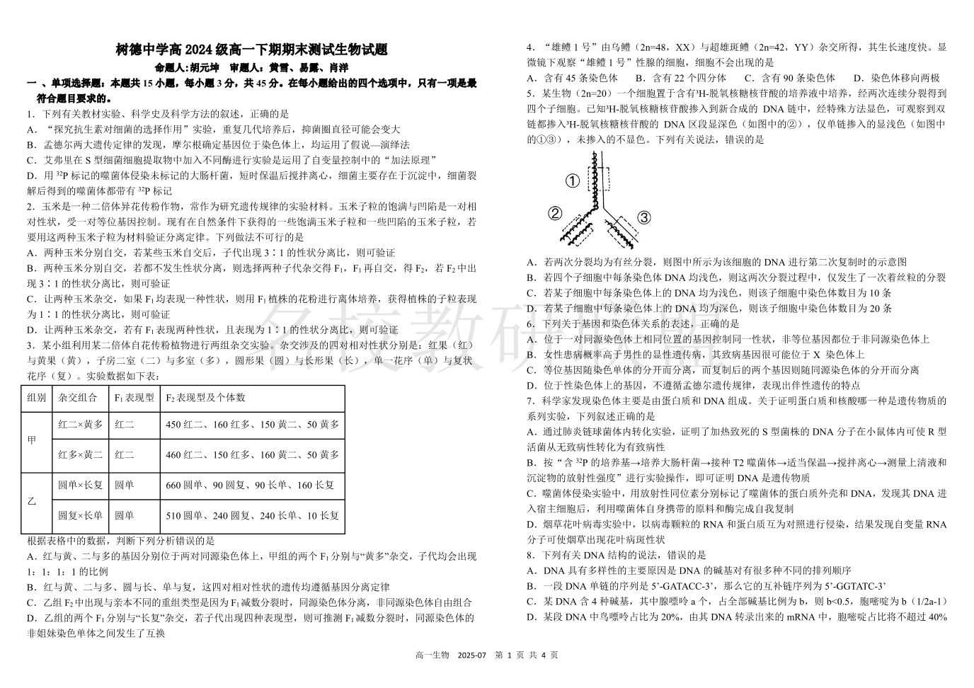 四川省成都市树德中学2024-2025学年高一下学期期末考试 生物试卷(含答案).pdf