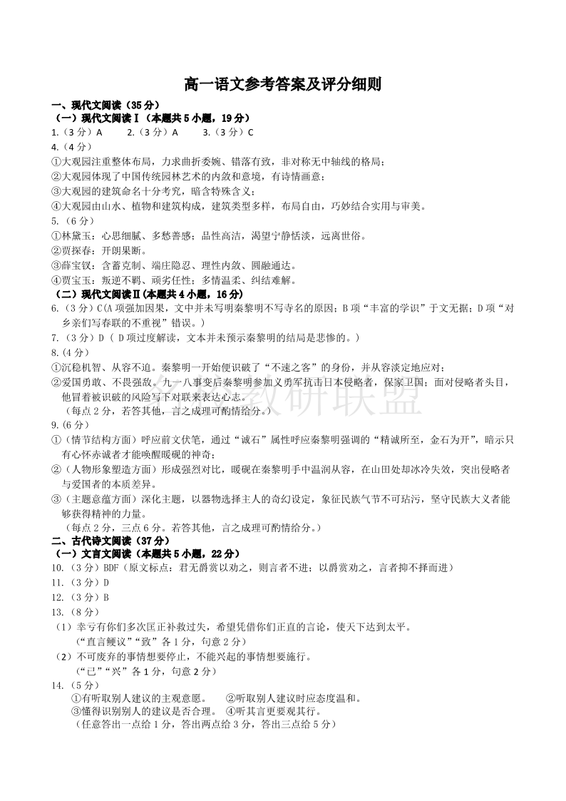 河南省许昌市2024-2025学年高一下学期期末教学质量检测 语文答案.pdf