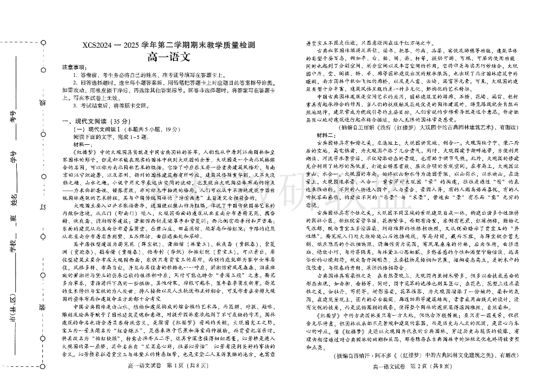 河南省许昌市2024-2025学年高一下学期期末教学质量检测 语文.pdf