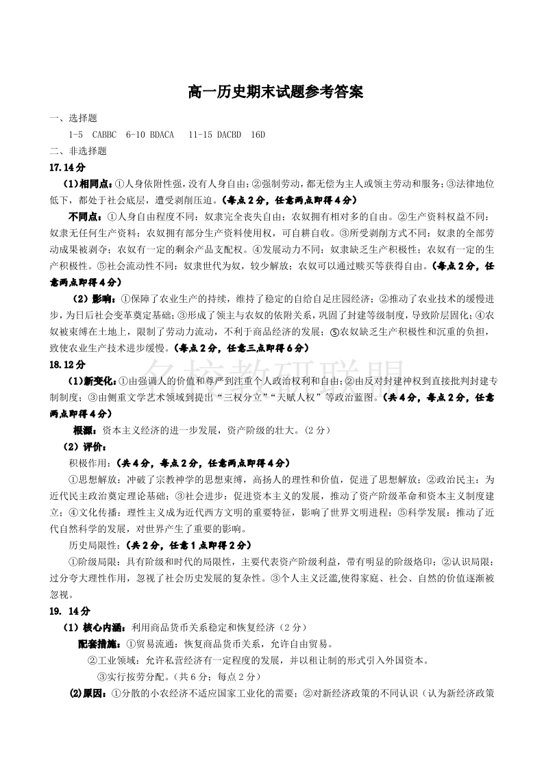 河南省许昌市2024-2025学年高一下学期期末教学质量检测 历史答案.pdf