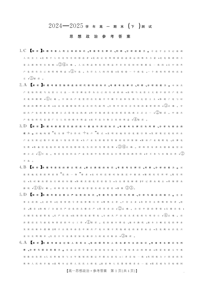 河南新乡2024-2025学年下学期高一政治试卷(期末考试)答案.pdf