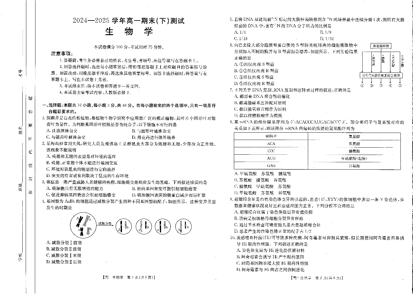 河南新乡2024-2025学年下学期高一生物试卷(期末考试).pdf