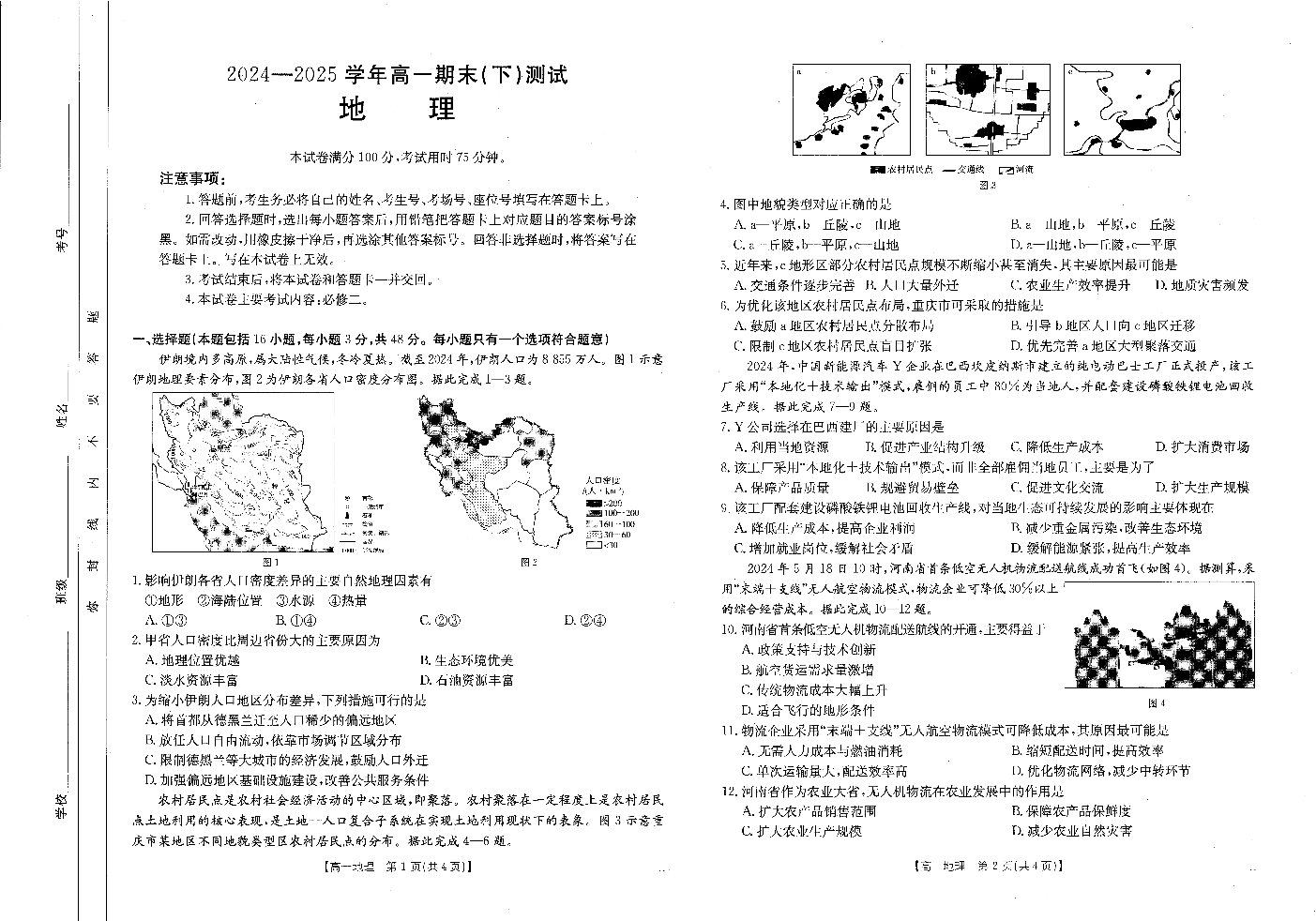 河南新乡2024-2025学年下学期高一地理试卷(期末考试).pdf