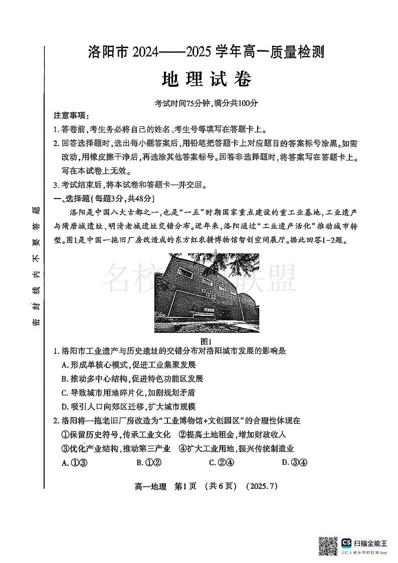 地理试卷-洛阳市2024-2025高一下期末.pdf