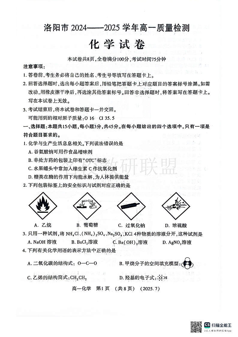 化学试卷-洛阳市2024-2025高一下期末.pdf