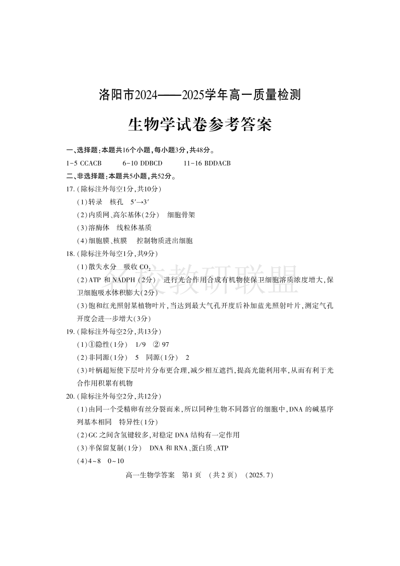 生物答案-洛阳市2024-2025高一下期末.pdf