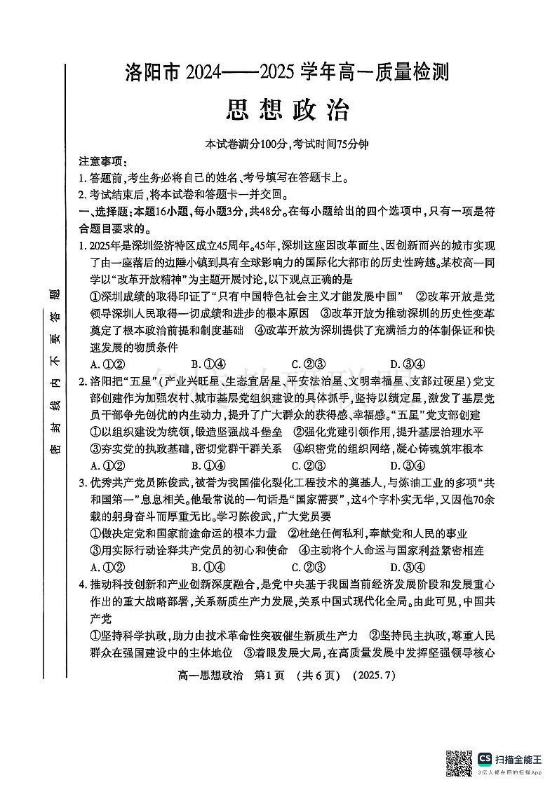政治试卷-洛阳市2024-2025高一下期末.pdf