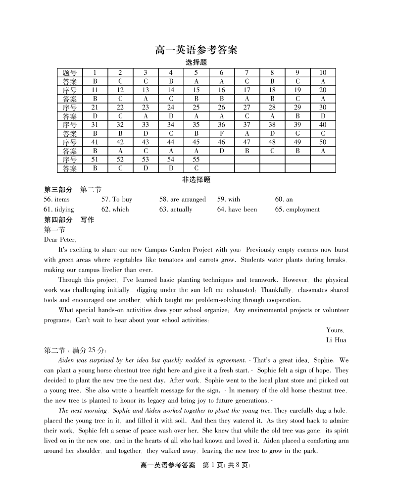 高一英语参考答案.pdf