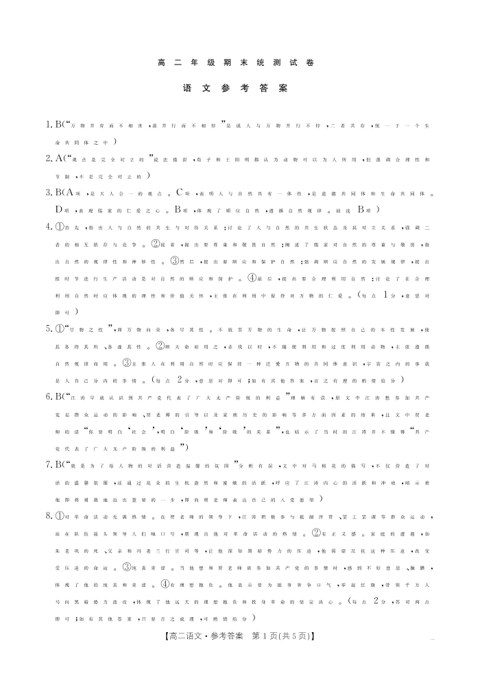 云南省临沧市2024-2025学年下学期高二期末质量测试 语文答案.pdf