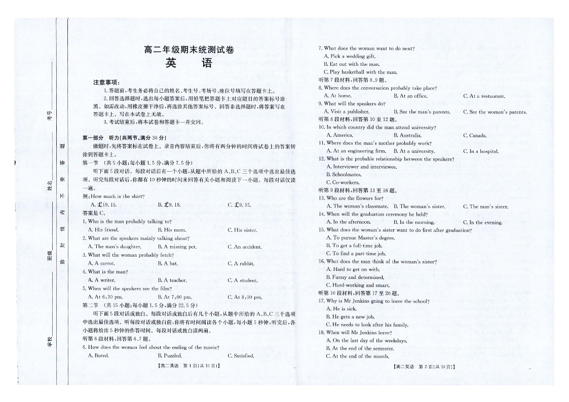 云南省临沧市2024-2025学年下学期高二期末质量测试 英语.pdf