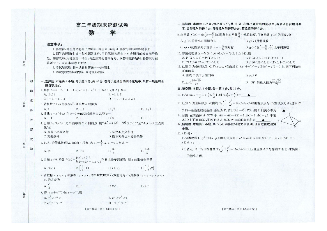 云南省临沧市2024-2025学年下学期高二期末质量测试 数学.pdf