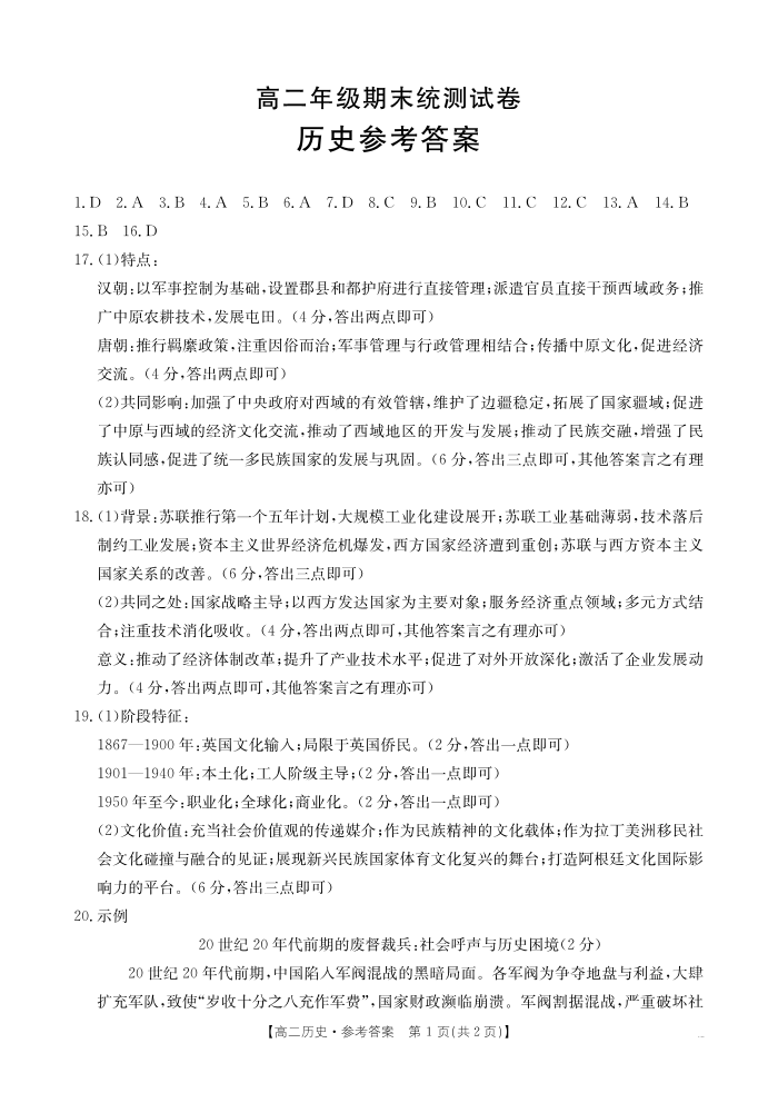 云南省临沧市2024-2025学年下学期高二期末质量测试 历史答案.pdf