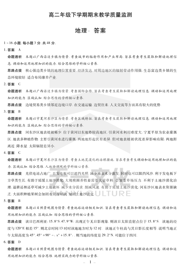 地理高二下期末教学质量监测详细答案.pdf