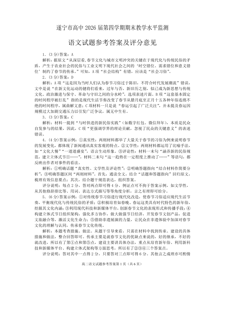 四川省遂宁市高中2026届高二第四学期期末教学水平监测 语文答案.pdf
