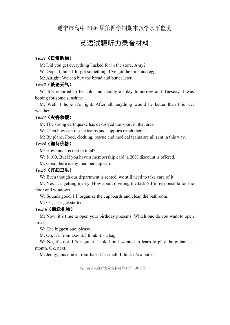 四川省遂宁市高中2026届高二第四学期期末教学水平监测 英语听力.pdf