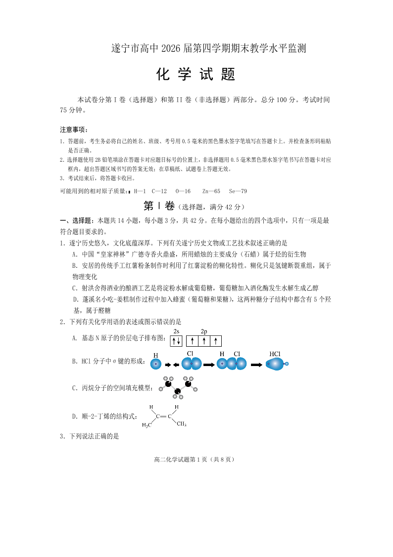 四川省遂宁市高中2026届高二第四学期期末教学水平监测 化学.pdf