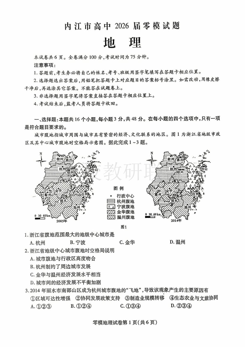 四川省内江市高中2026届零模试题(高二下学期期末考试)地理试题(含答案).pdf