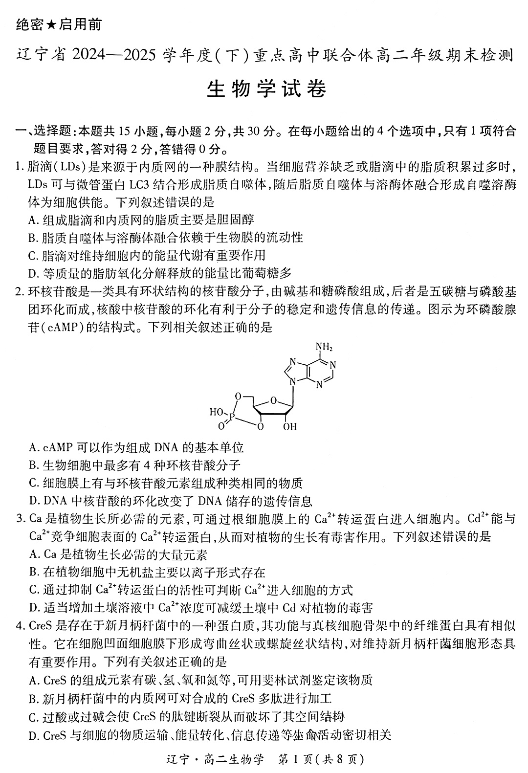 辽宁省2024-2025学年度(下)重点高中联合体高二年级期末检测 生物试卷(含答案).pdf