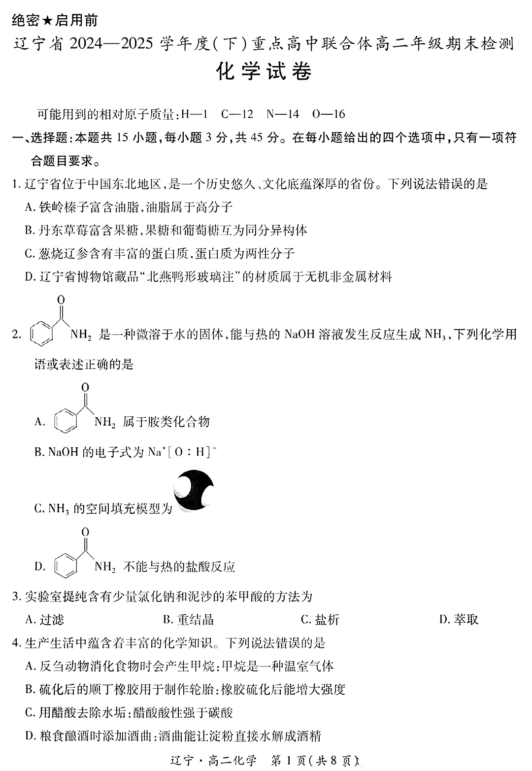 辽宁省2024-2025学年度(下)重点高中联合体高二年级期末检测 化学试卷(含答案).pdf