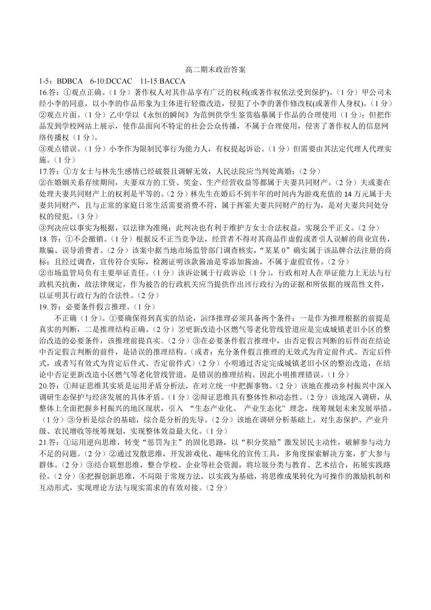 河南省许昌市2024-2025学年第二学期高二期末教学质量检测 政治答案.pdf