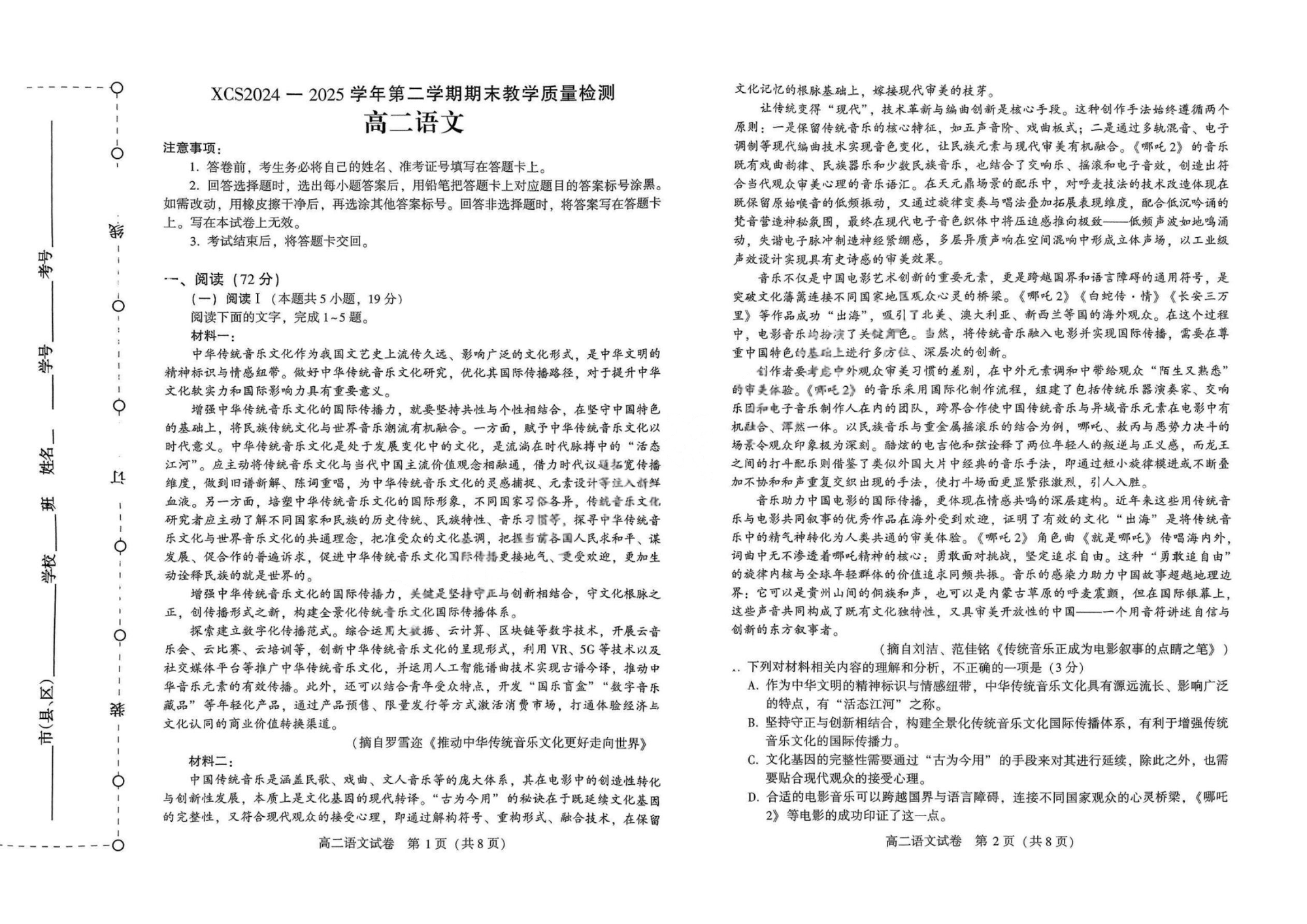 河南省许昌市2024-2025学年第二学期高二期末教学质量检测 语文.pdf