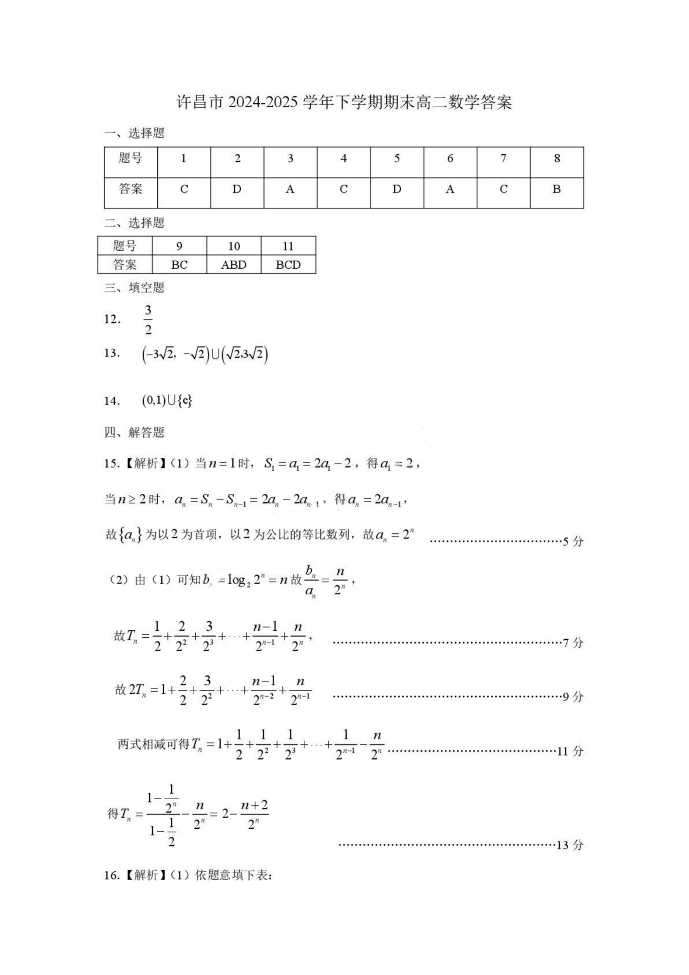 河南省许昌市2024-2025学年第二学期高二期末教学质量检测 数学答案.pdf