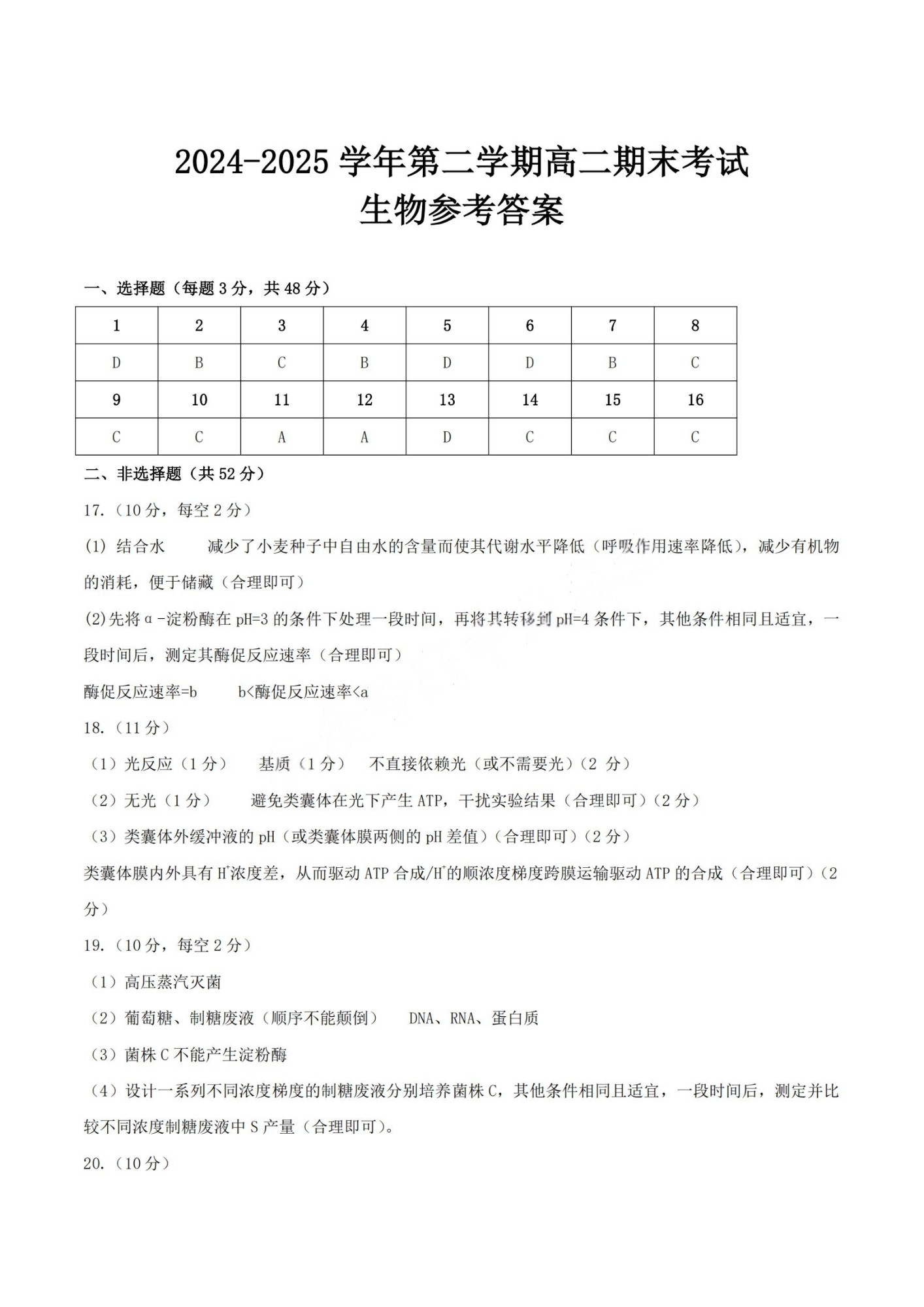 河南省许昌市2024-2025学年第二学期高二期末教学质量检测 生物答案.pdf