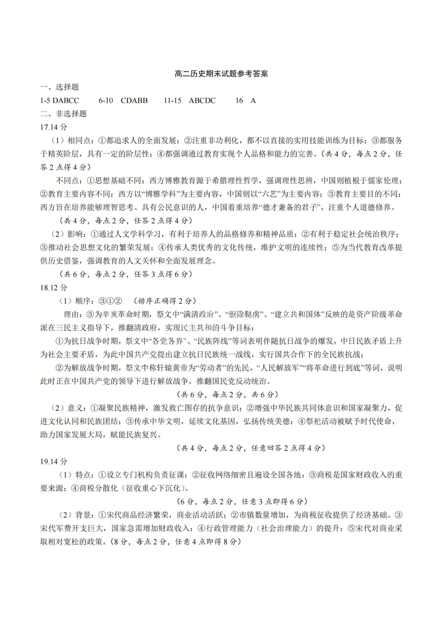 河南省许昌市2024-2025学年第二学期高二期末教学质量检测 历史答案.pdf
