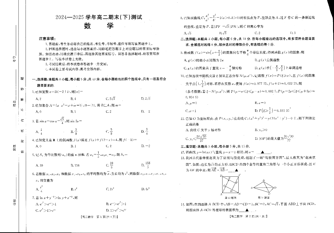 河南新乡2024-2025学年下学期高二数学试卷(期末考试).pdf