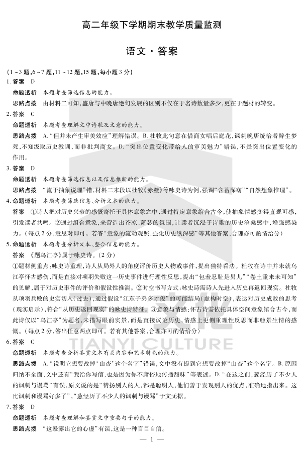 河南省平顶山市2024-2025高二年级下学期期末教学质量监测 语文答案.pdf