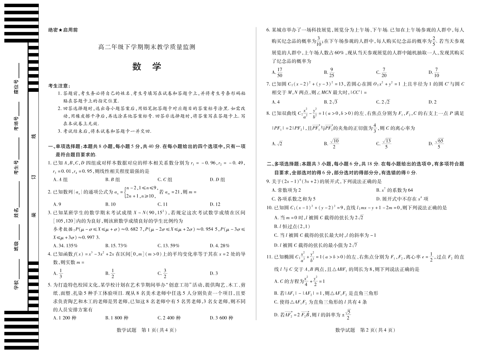 河南省平顶山市2024-2025高二年级下学期期末教学质量监测 数学.pdf