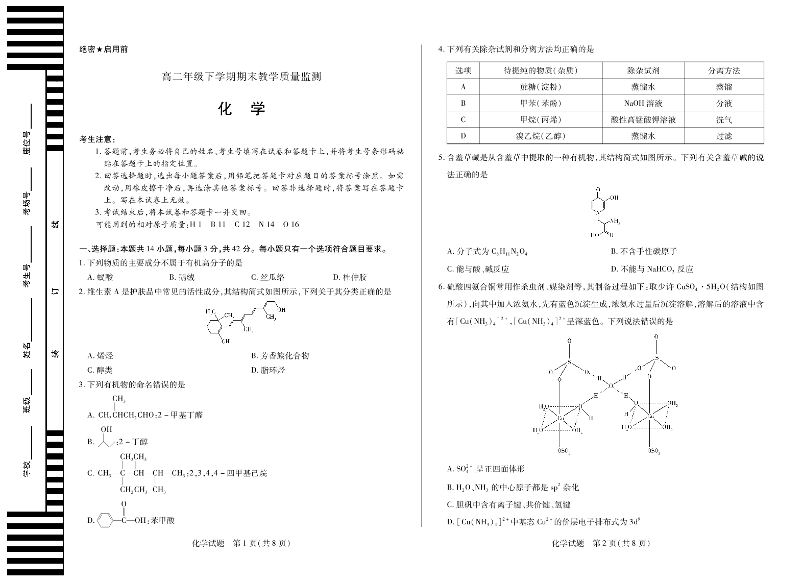 河南省平顶山市2024-2025高二年级下学期期末教学质量监测 化学.pdf