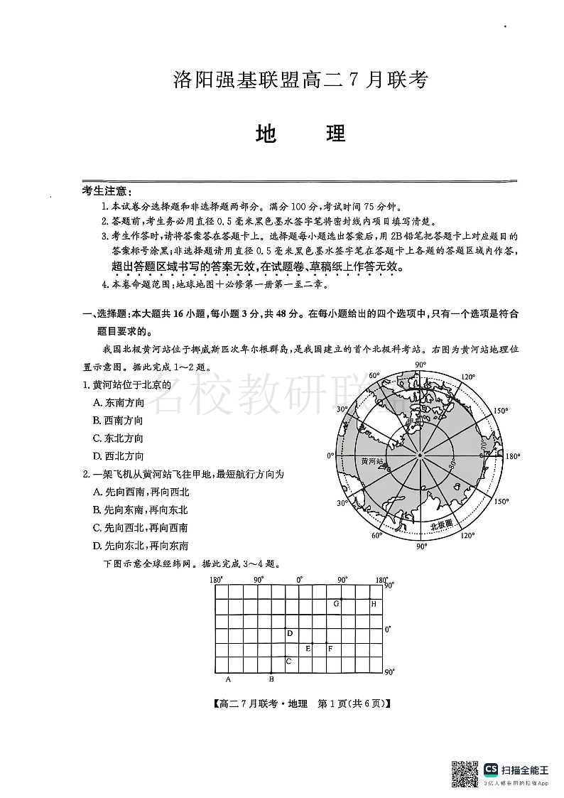 地理试卷-洛阳强基联盟高二7月联考.pdf