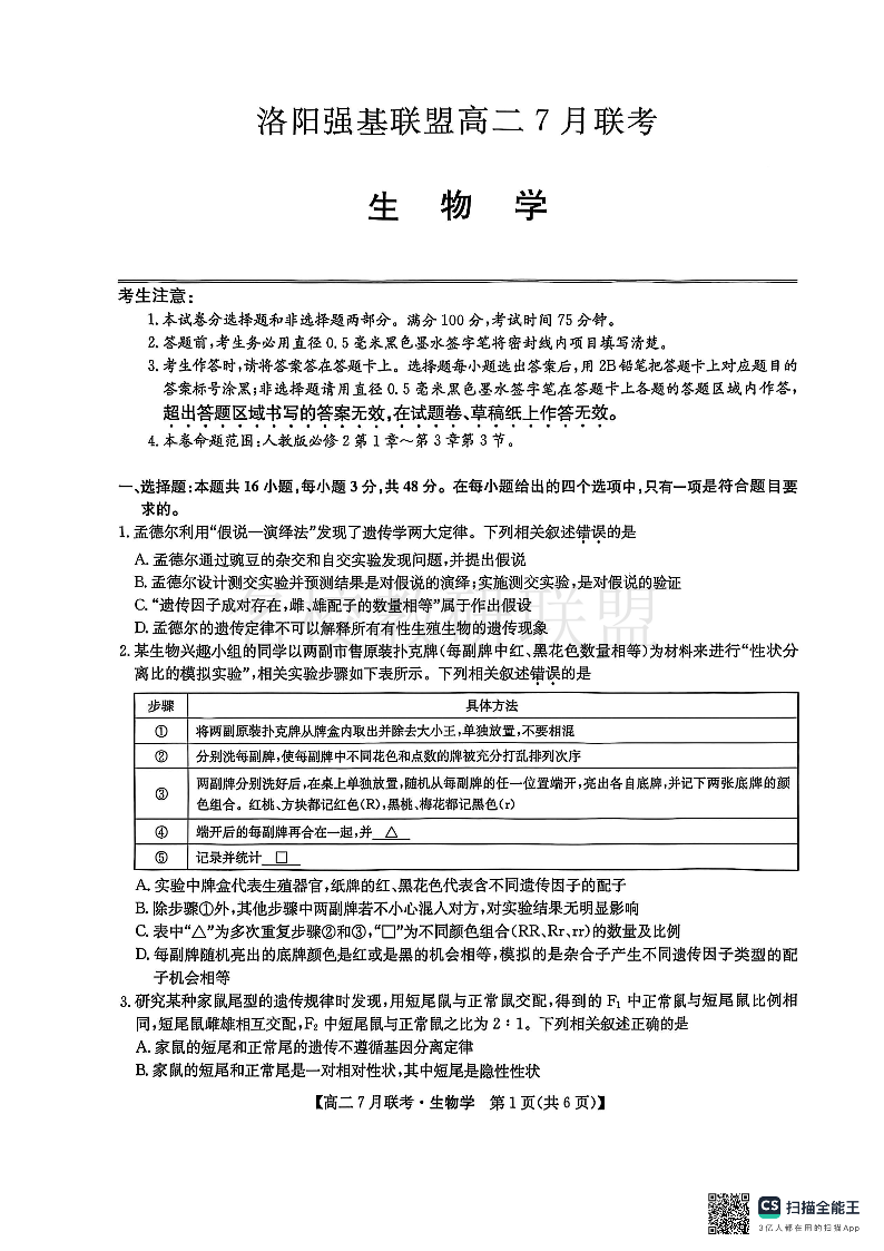 生物试卷-洛阳强基联盟高二7月联考.pdf
