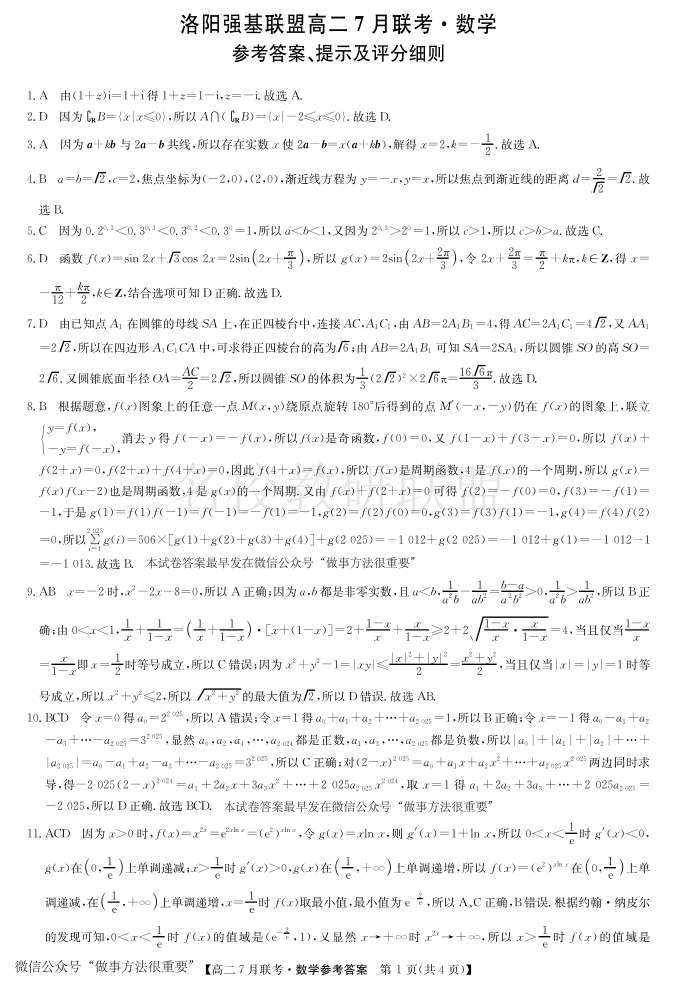数学答案-洛阳强基联盟高二7月联考.pdf