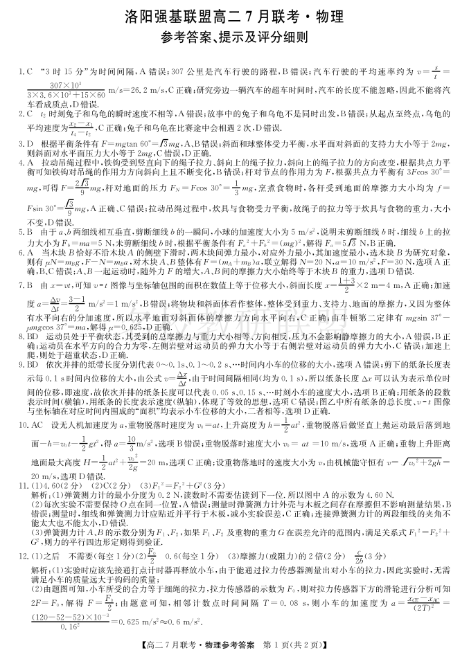 物理答案-洛阳强基联盟高二7月联考.pdf