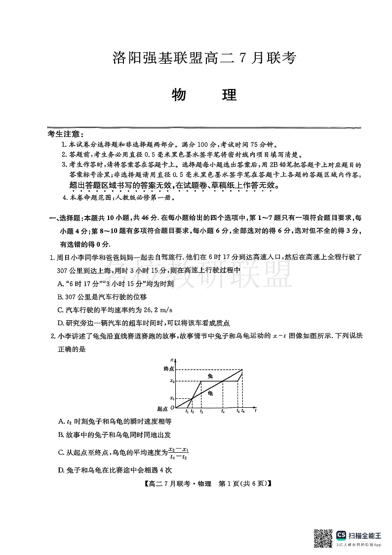 物理试卷-洛阳强基联盟高二7月联考.pdf