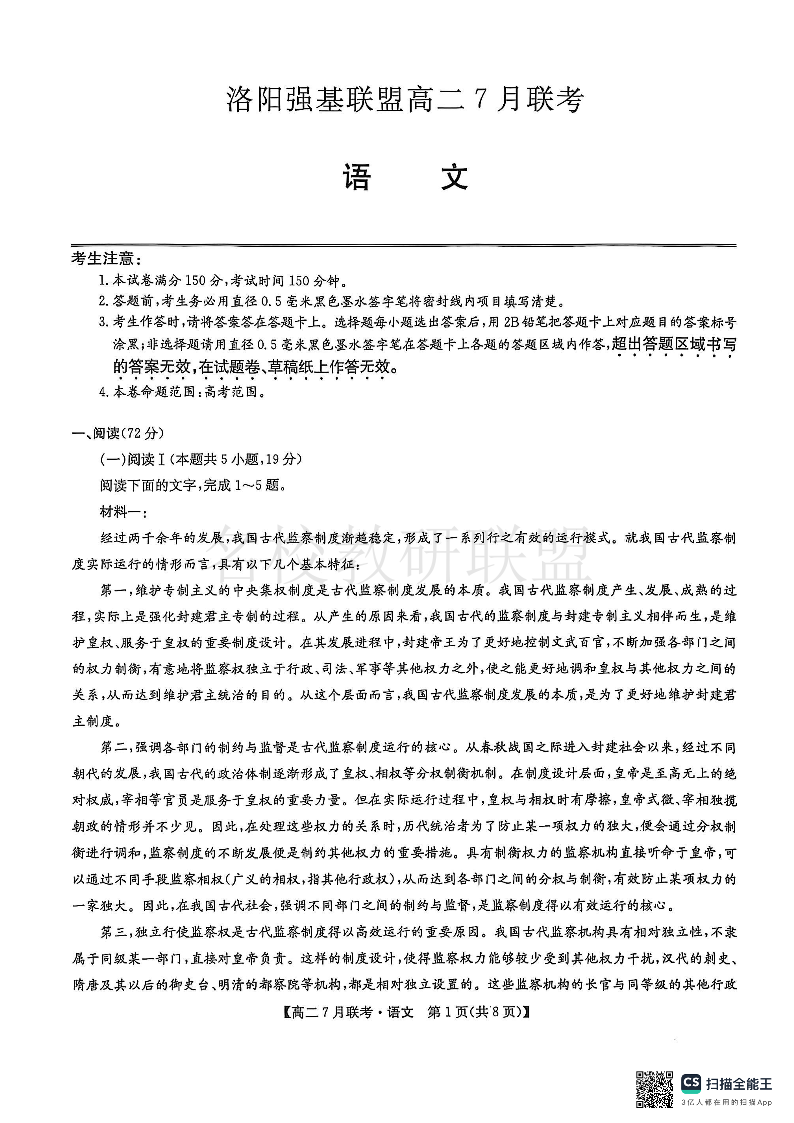 语文试卷-洛阳强基联盟高二7月联考.pdf