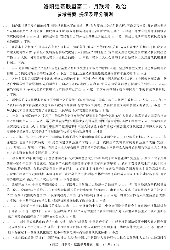 政治答案-洛阳强基联盟高二7月联考.pdf