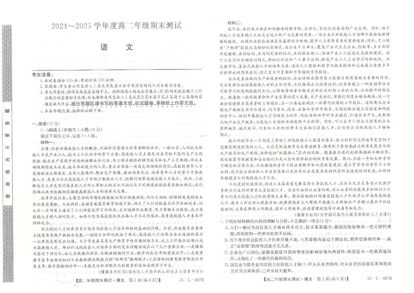 河北省石家庄市七县联合体2024-2025学年高二年级下学期期末考试 语文.pdf