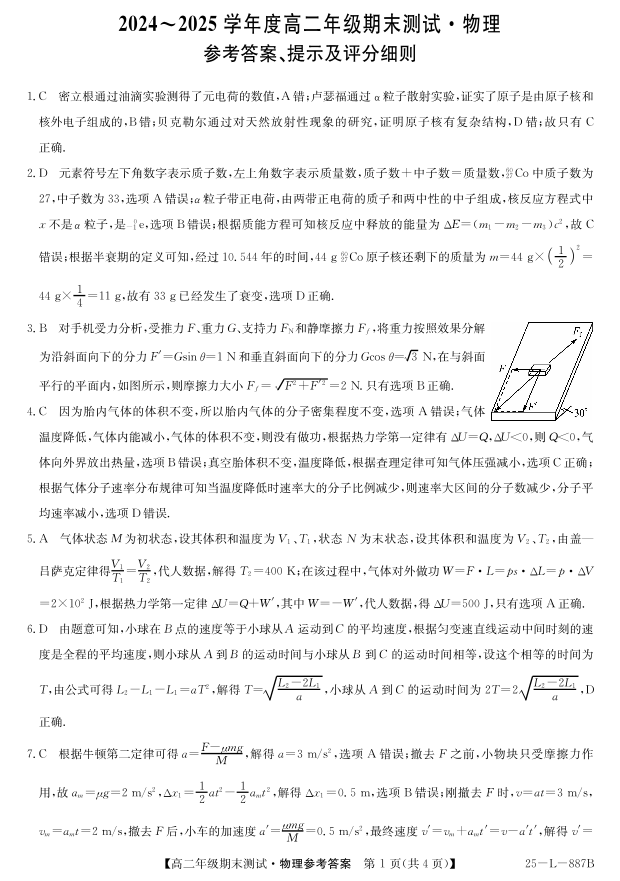 河北省石家庄市七县联合体2024-2025学年高二年级下学期期末考试 物理答案.pdf