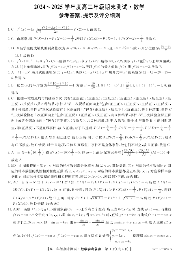 河北省石家庄市七县联合体2024-2025学年高二年级下学期期末考试 数学答案.pdf