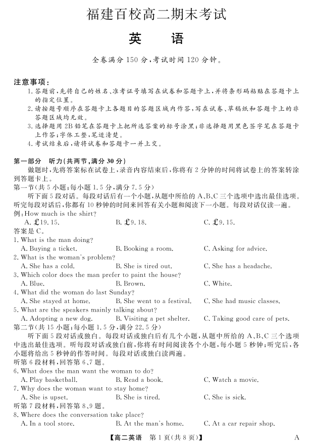 福建省百校2024-2025学年高二下学期期末考试 英语.pdf