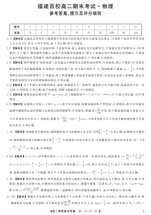 福建省百校2024-2025学年高二下学期期末考试 物理答案.pdf