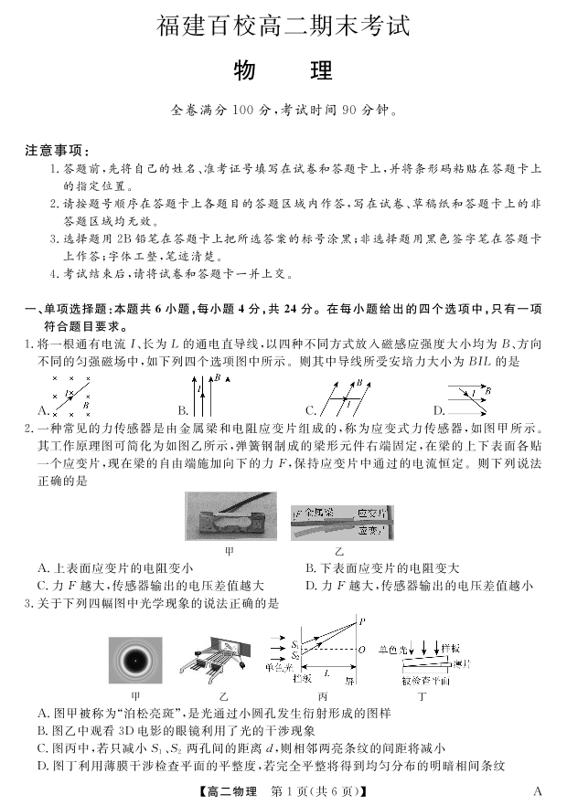 福建省百校2024-2025学年高二下学期期末考试 物理.pdf