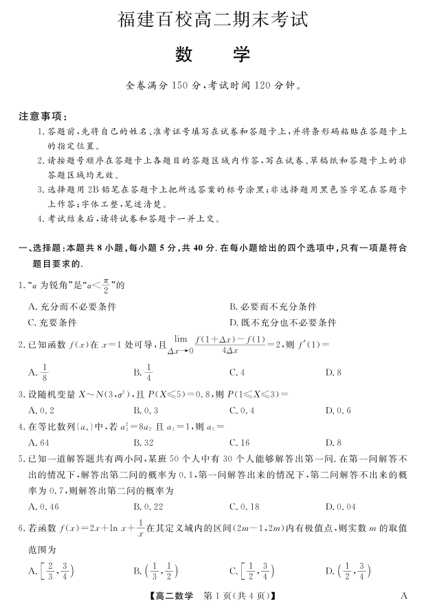 福建省百校2024-2025学年高二下学期期末考试 数学.pdf