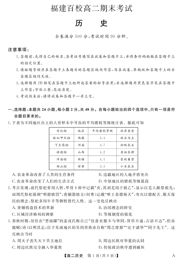 福建省百校2024-2025学年高二下学期期末考试 历史.pdf